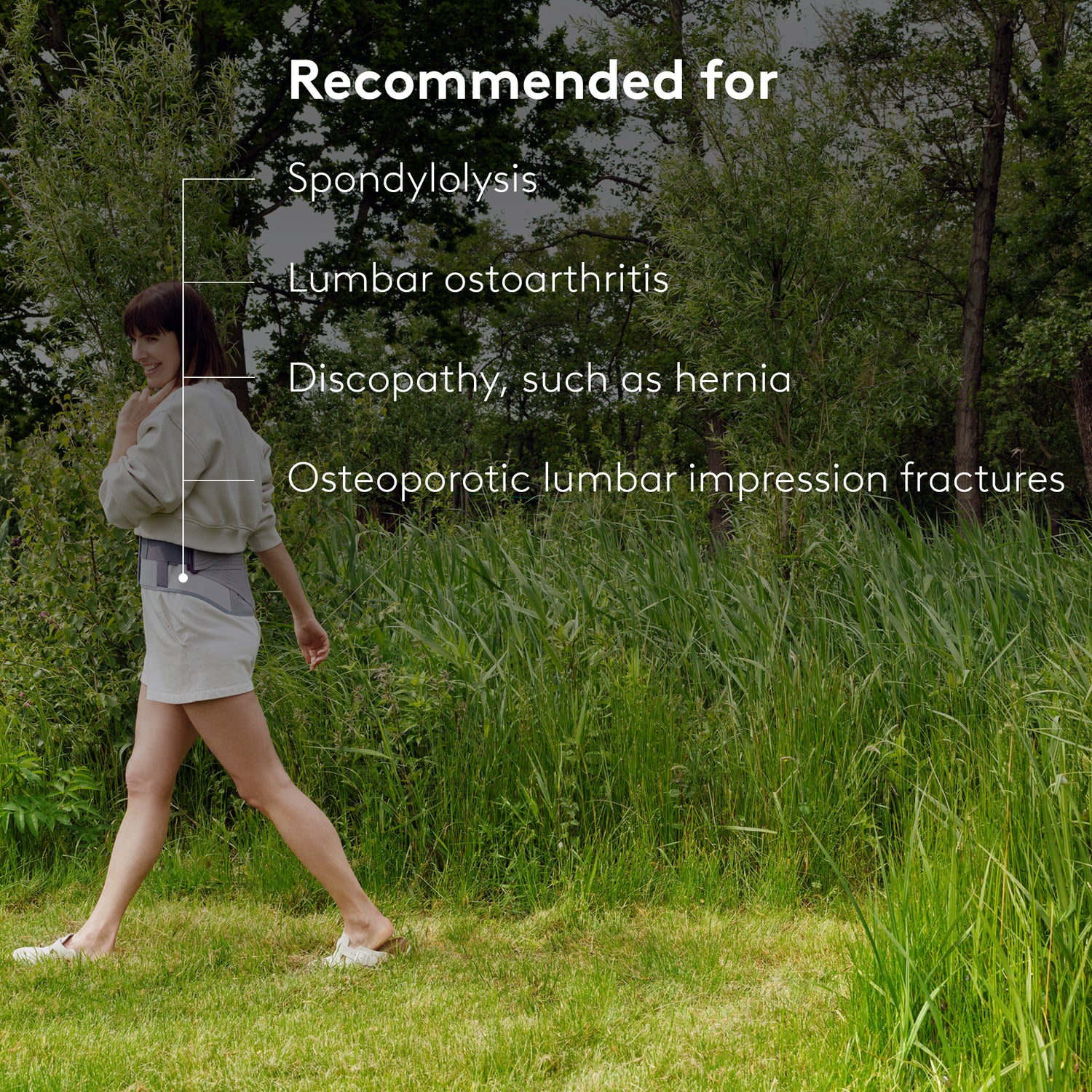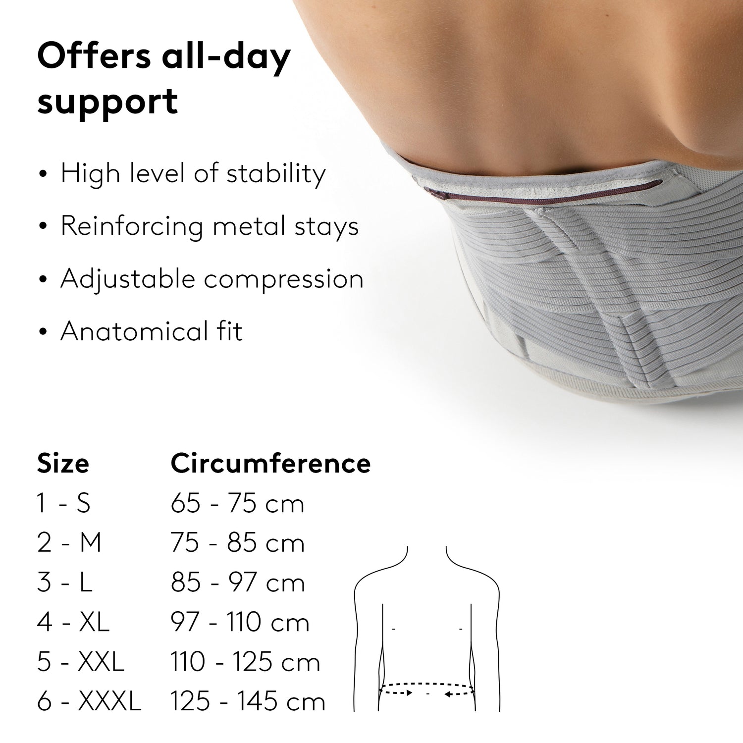 The shape and material make the Med Back Brace comfortable to wear when going about day-to-day life. The anatomical fit makes it suitable for both men and women and allows for optimal position retention. The fit ensures the brace is not detectable when worn under clothes.
